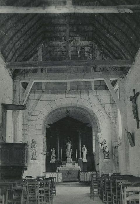 L'édifice comprend une nef unique couverte en charpente, un choeur de deux travées voûtées d'un berceau en arc surbaissé et une abside semi-circulaire voûtée en cul de four. Un petit clocher en charpente surmonte le choeur.