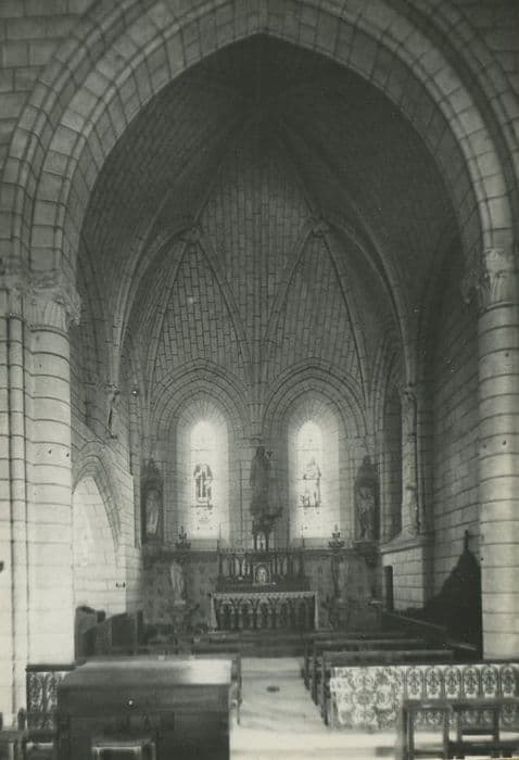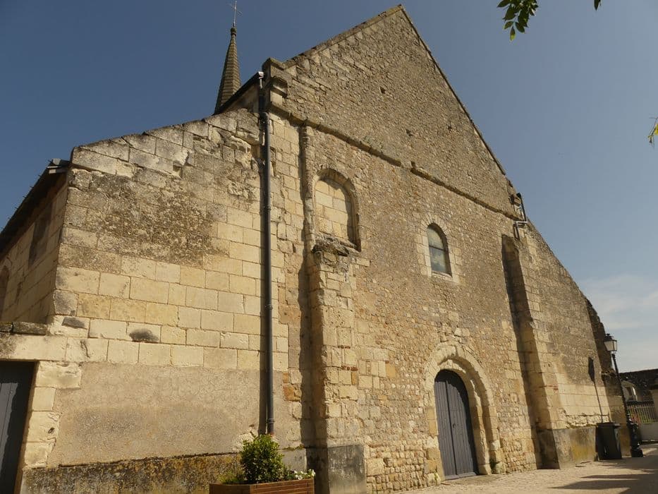 Au 12e siècle, l'église appartenait à l'abbaye de Marmoutier. La façade occidentale est un vestige de l'église primitive du 11e siècle, et est parementée en petit appareil. La nef a été refaite au 16e siècle, et accompagnée alors de deux collatéraux voûtés d'ogives. Le choeur est couvert de voûtes angevines avec statuettes. Une chapelle seigneuriale lui est reliée au nord. Le clocher qui flanque l'église au sud date du 13e siècle. Au 16e siècle, il fut surélevé d'un étage ajouré de deux baies sur chaque face. La flèche qui le couronne est moderne.