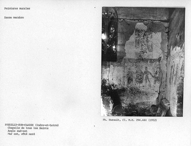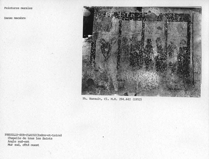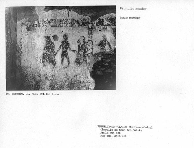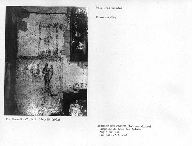 Cette chapelle est située à l'angle de l'ancien cimetière, aujourd'hui jardin public. L'accès se fait à l'ouest, par une porte en arc brisé précédée d'un perron de quatre marches. La nef est lambrissée. L'édifice est orné d'une peinture murale représentant une danse macabre. Les scènes sont distribuées dans des panneaux rectangulaires contigus. Sur le mur Est, à gauche de l'autel, se devinent deux musiciens dont l'un joue de la harpe. Sur le même mur, à droite de l'autel, deux figures féminines sont discernables, l'une portant une couronne royale, l'autre tenant une crosse sans doute d'abbesse. Les figures sont accompagnées d'inscriptions plus ou moins longues, en caractères gothiques.
