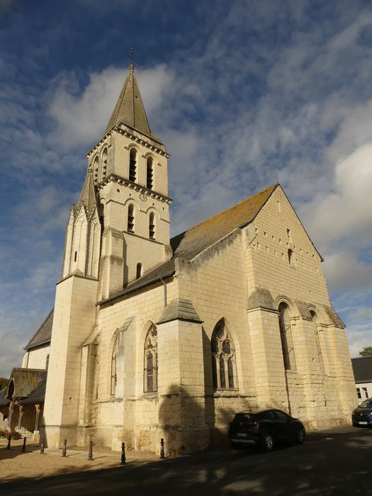 Le choeur de la fin du 12e siècle ainsi que la petite chapelle nord présentent une architecture d'influence angevine. La chapelle sud a été ajoutée au 14e siècle. La nef du 11e siècle est couverte d'une charpente du 15e. Le clocher, commencé au 12e siècle, a été achevé au 14e, de même que sa tourelle d'accès.