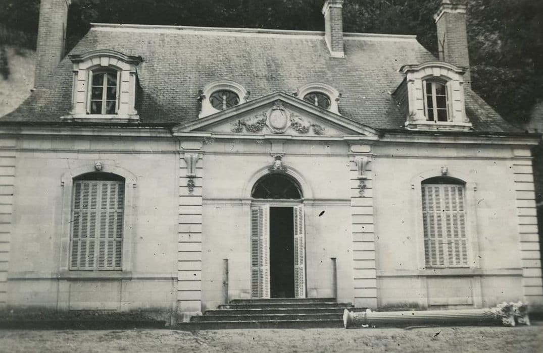 Maison construite avant 1765, de plan rectangulaire. La façade principale est divisée en trois travées par deux pilastres à bossages accostant la porte en plein cintre et soutenant un fronton triangulaire meublé d'un médaillon accompagné de guirlandes. A l'ouest de la maison, de profondes caves sont creusées dans le coteau.