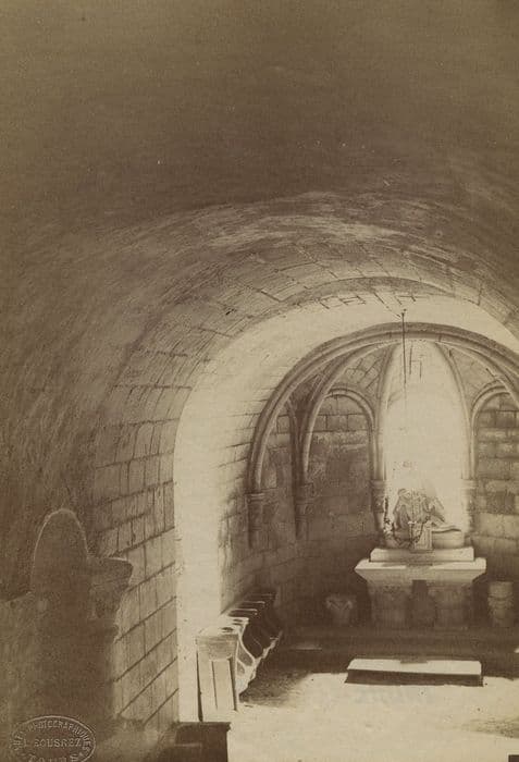 L'église moderne a été bâtie au-dessus d'une crypte ancienne. Choeur du 13e siècle à voûtes angevines.
