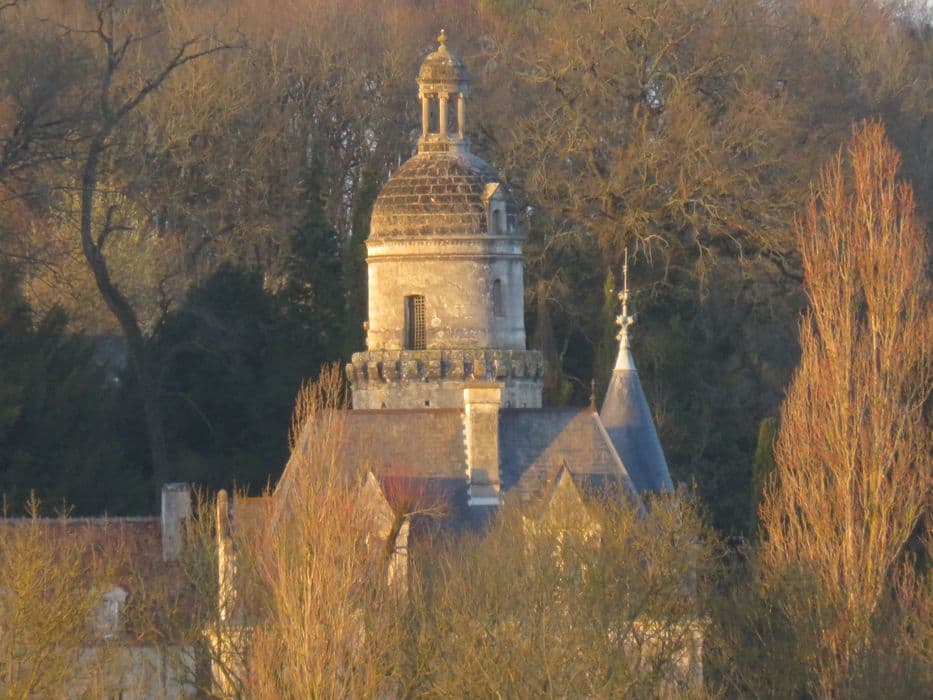 Ancien fief relevant du château de Loches. En 1449, Jean du Puy, propriétaire, obtint l'autorisation de fortifier le château. En 1488, il fut acquis par Adam Fumée, premier médecin de Charles VII et de Louis XI. Très restauré au 19e siècle, l'édifice est flanqué à l'est d'une haute tour circulaire en petit appareil, datant du 14e siècle, denier vestige de l'habitation fortifiée primitive. Elle a été ornée, au 16e siècle, de bandeaux moulurés séparant chacun des quatre étages. La porte présente un plein cintre retombant sur des pilastres, dominé par un fronton triangulaire reposant sur une autre rangée de pilastres. La tour comporte un vaste escalier à vis sur trois étages, le quatrième étant composé d'une pièce à feu ayant sans doute servi de salle de veille. Le dernier étage, rajouté au 16e siècle, est légèrement en retrait des corbeaux des anciens mâchicoulis et est couvert en dôme à imbrications d'écailles couronné d'un lanterneau. Au sud, épaulée par un commun, se trouve une tour carrée qui servait de pigeonnier, percée de 1600 boulins carrés creusés dans le parement.