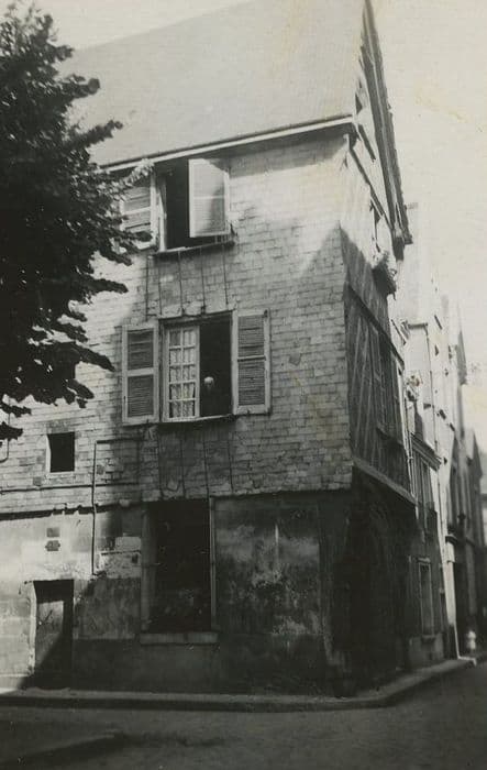 Maison à deux niveaux de pans de bois sur un rez-de-chaussée maçonné, construite au cours du 15e siècle dans le bourg commerçant du Bourg Saint-Pierre. On y a découvert en 1992 une cheminée Renaissance au décor peint en camaïeu. Ces peintures maniéristes représentent une scène guerrière (combat à pied et à cheval) et sont d'une grande qualité d'exécution.