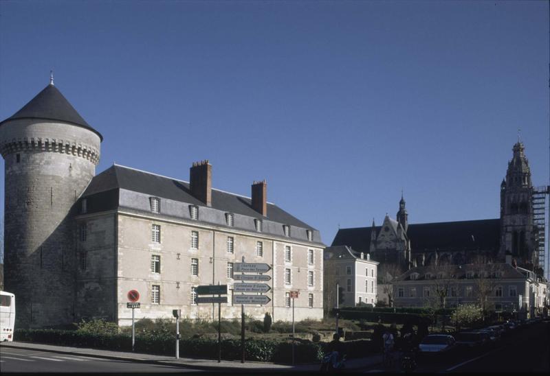 Les tours féodales flanquaient les angles d'un château bâti par Henri II Plantagenêt en 1160. Les tours nord et sud datent du troisième quart du 12e siècle, tandis que l'ancien palais est des 16e et 18e siècles. Le bâtiment nord, du 16e siècle, était l'ancienne habitation des gouverneurs de Tours. Le bâtiment ouest, du 18e siècle, bâti entre les deux tours, devait lui servir d'annexe.