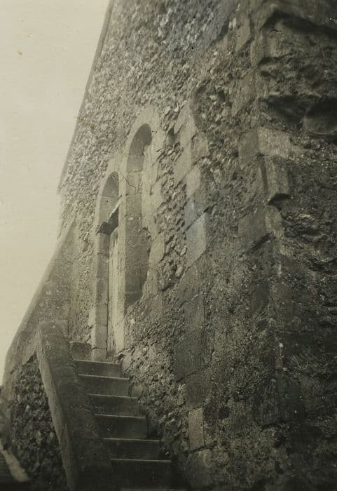 Cet édifice conserve vraisemblablement des vestiges préromans du 6e siècle. C'est un édifice rectangulaire, constitué d'une nef et d'un choeur carré du 12e siècle, sur cave. Les deux volumes sont séparés par une cloison. Les maçonneries anciennes du 11e siècle se composent de moellons réglés. La salle Est du second niveau a été ornée de fresques aujourd'hui presque effacées. Un groupe de cavaliers se devine, portant un oriflamme, ainsi qu'un chevalier armé au-dessus d'un écu armorié et sous une silhouette humaine très fruste.