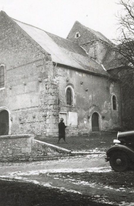 Ancienne vicairie, l'église remonte à l'époque carolingienne (pignon ouest et mur nord construits en maçonnerie de moëllons avec des arases de deux rangs de briques). Le pignon ouest est percé d'une porte à mouluration Renaissance. Une abside semi circulaire termine l'édifice. Le clocher se situe sur le choeur. Il présente un plan carré et est percé d'une baie plein cintre s'ouvrant au-dessus de l'abside. A l'intérieur, la nef a été divisée au 16e siècle. La croisée du transept forme choeur et abside. La nef, le choeur surmonté du clocher et l'abside appartiennent au 10e ou 11e siècle, et remaniés au 12e siècle. Les croisillons sont du 15e siècle. Chapiteaux sculptés (feuilles d'acanthe, crosses, denticules...).
