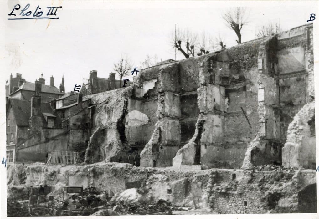 Les fortifications comprennent l'enceinte du château, et l'enceinte de la ville qui s'y rattache au nord et au sud. Dans leur ensemble, elles datent du 13e siècle. Cependant, l'enceinte de l'abbaye de Saint-Lomer fut ajoutée au 14e siècle, et celle du couvent des Cordeliers au 15e siècle. La partie orientale et celle qui borde la Loire furent démolies au 18e siècle, lors de la construction de l'évêché et des quais. La plupart des portes furent détruites à l'époque de la Révolution. La plupart des tours sont encore pourvues d'archères ou autres ouvrages défensifs.