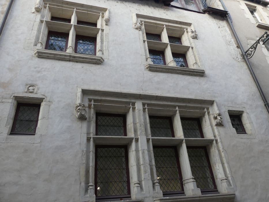 La façade, composée de deux étages inégaux, comporte une série de fenêtres moulurées dont les meneaux ont été supprimés, mais dont les traces subsistent. Les moulures sont arrêtées sur des culots finement sculptés de masques et de grotesques.
