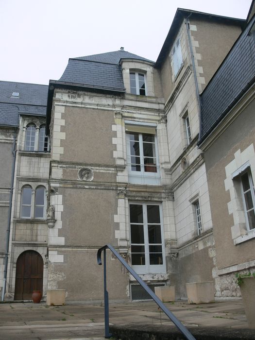 La façade sur jardin se compose de deux bâtiments réunis par un escalier éclairé par des fenêtres jumelées en plein cintre. Toutes les baies sont encadrées de moulures encore gothiques (de l'extrême fin du 15e siècle) amorties par des culots sculptés. L'ensemble de la façade est néanmoins de style Renaissance, du 16e siècle. Une série de médaillons sculptés orne la frise qui sépare les deux étages du bâtiment.
