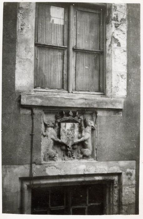 La maison est appelée "Hôtel Jacques de Moulins" ou "Hôtel de Rochefort", et a appartenu, à la fin du 15e siècle, à Jacques de Moulins, seigneur de Rochefort, maître de la Chambre aux Deniers du duc Louis II d'Orléans, futur Louis XII. L'origine du bas-relief ornant la porte remonte à ce propriétaire qui fit sculpter les armoiries de son maître sur son logis, selon la coutume fréquente de cette époque. L'écusson d'armoiries est chargé de trois fleurs de lys, sommé d'une couronne de prince de sang royal dont le cercle est évidé, entouré du collier de Saint-Michel, et supporté à dextre par un porc-épic accolé du camail, et à senestre par un loup. Il devait être autrefois peint. A l'intérieur, la maison conserve des solives moulurées et une cave voûtée dans laquelle se trouve un puits.