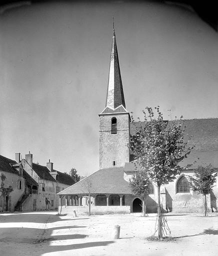 La façade occidentale est précédée d'un porche en charpente du 16e siècle. Le clocher du 12e siècle présente une tour carrée ajourée d'une baie en plein cintre sur chaque face à hauteur de beffroi, et amortie par une flèche en charpente. La nef, primitivement unique, s'est vue augmentée d'un collatéral au 16e siècle, entre le clocher et une chapelle seigneuriale.