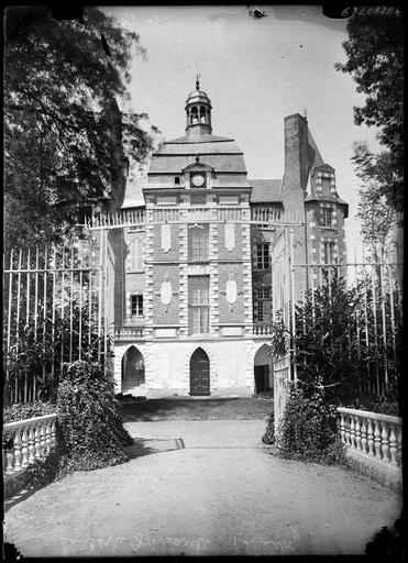 Une motte est attestée dès 980. Le château actuel garde encore l'aspect d'une maison-forte dont la motte aurait été nivelée en une succession de deux terrasses. Du château médiéval subsiste le soubassement de deux tours au pied de la façade principale, datant de la fin du 14e ou du début du 15e siècle. Vers 1520, le château fut agrémenté d'une façade aux percements sculptés de grotesques et de médaillons. A la même époque, adjonction de deux tours rondes. Ruiné en 1562, le château connaît d'importants remaniements entre 1630 et 1650 : création d'un avant-corps, de tourelles polygonales, de deux ailes basses disparues en 1832 et qui s'appuyaient autrefois sur la première terrasse. Les dépendances et les échauguettes remontent également à cette période. Au 19e siècle, la terrasse sur l'avant-cour fut modifiée dans le style néo-gothique. L'avant-corps central aurait été reconstruit après la Seconde guerre mondiale. A l'intérieur, une salle conserve un plafond à la française orné d'un décor peint du 17e siècle.