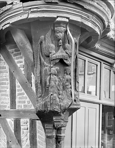 Cette maison en bois formait, avec l'ancienne chancellerie et l'hôtel Saint-Pol, un ensemble connu sous le nom de Carroir (carrefour) Doré à cause des dorures qui rehaussaient autrefois les plombs de la toiture de l'une des maisons. L'édifice a perdu ses tourelles d'angles dont subsistent seules les enrayures, lesquelles indiquent que l'une devait être circulaire et l'autre polygonale. L'étage de la maison et les tourelles ont été supprimés et remplacés par un comble avec pignon. Les poteaux corniers ont conservé leurs sculptures. Ils sont ornés de bases, de bagues et de petits chapiteaux à profils de la fin du 15e ou du début du 16e siècle, et surmontés de parties sculptées (Saint-Michel terrassant le dragon ; Saint-Jean tenant l'Agneau ; Annonciation...).