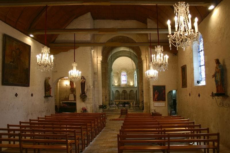 L'église romane se compose d'une nef, d'un transept, d'un choeur et d'une absidiole droite, celle de gauche ayant été démolie pour la construction de la sacristie. Le bras droit du transept date du 16e siècle, avec voûte à huit nervures retombant sur des chapiteaux en culs de lampes Renaissance. L'accès se fait par une porte romane protégée par un porche moderne. La croisée du transept est surmontée d'un clocher roman éclairé, sur ses quatre faces, par deux fenêtres jumelées.