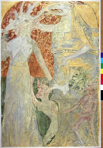 Chapelle bâtie aux 14e et 15e siècles, ornée de peintures murales du 15e siècle illustrant la vie du saint.
