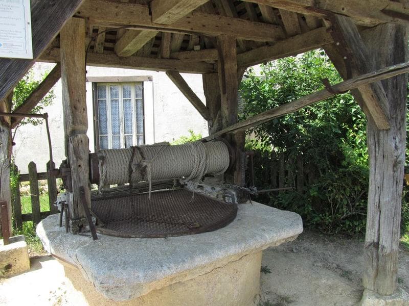 Puits recouvert d'un abri en charpente en petites tuiles de bois. L'écho qu'il émet est d'une grande netteté.