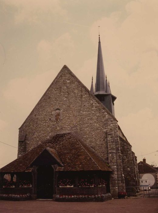 Edifice de plan rectangulaire, terminé par un choeur à chevet plat. Ce dernier est la partie la plus ancienne de l'église, remontant sans doute au 11e siècle. La nef est également d'époque romane mais elle a été transformée à la fin du 15e siècle. En 1704, élévation du porche et du beffroi. La division de l'église intervient sans doute lors de la réfection du beffroi entreprise en 1928. Pour cacher la base du beffroi, un mur en briques et plâtre, percé d'un arc triomphal, est élevé entre la 4e et la 5e travée de la nef, fermant le chevet. Le choeur s'est alors trouvé sous le beffroi.