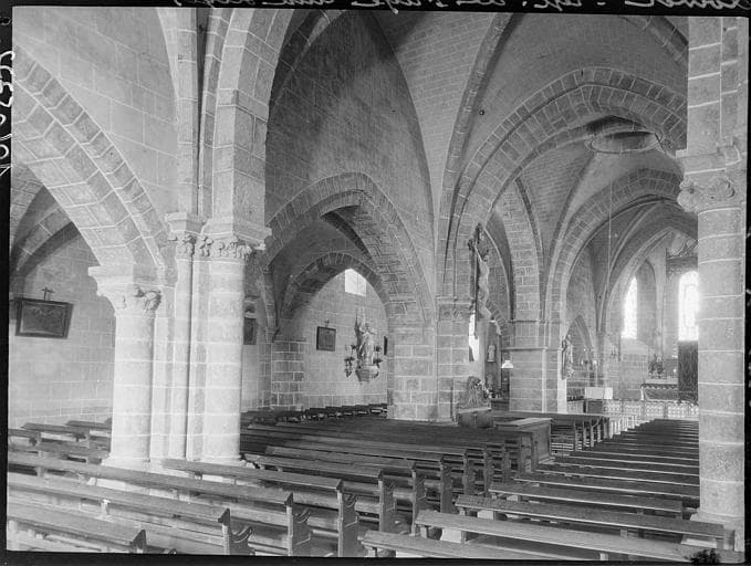 La nef et les bas-côtés de cette église du 13e siècle ont conservé leurs dispositions d'origine. Chapiteaux à feuillages de la même époque.
