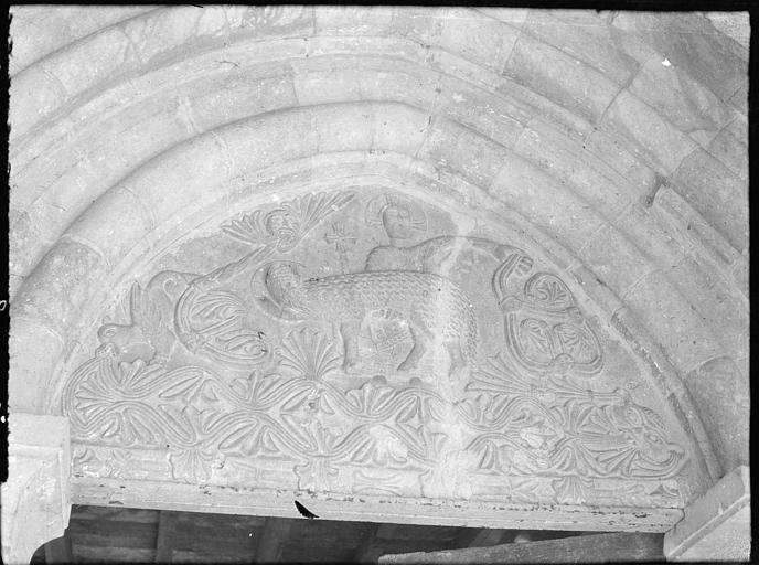 Cet édifice présente les caractères des édifices de la région datant du début du 12e siècle, ainsi que de fortes analogies avec ceux de la Bourgogne. Une nef allongée est précédée d'un porche, la base du clocher formant choeur, précédant une abside en cul de four. Le porche présente les caractéristiques des porches de la région. Il se compose d'une porte d'entrée en plein cintre et est percé de deux baies géminées reposant sur une colonnette avec chapiteau à la corbeille décorée de feuillage. Ce porche semble avoir été surélevé à une époque postérieure. Il abrite la porte d'entrée. Son encadrement est composé de deux arcs brisés reposant de chaque côté sur deux colonnettes à chapiteaux à feuillages. Le tympan est orné d'un Agneau pascal. La nef est voûtée en berceau et lambris. Le choeur, sous la base du clocher, est décoré de chaque côté par deux arcatures reposant sur un chapiteau sculpté.