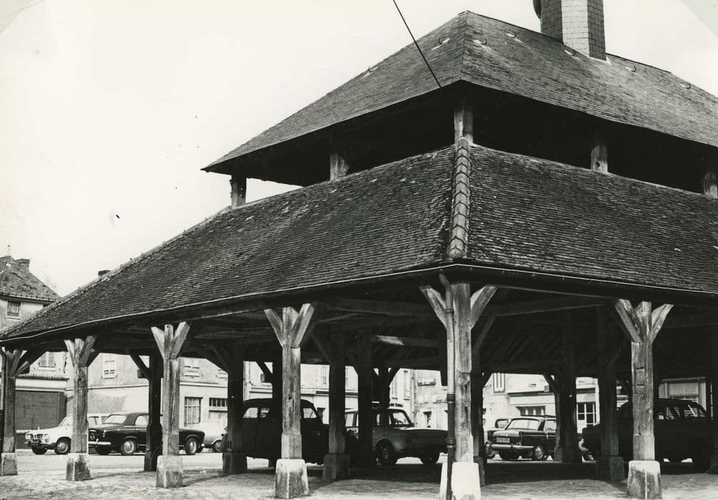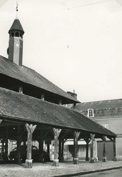 Village rural et bourg commerçant entre Montargis et Bellegarde-du-Loiret, le roi Charles IX établit à Ladon, en faveur du sire de Bésigny, quatre foires franches de tous impôts et péages. La halle est un ouvrage en charpente de bois, sans clôture, de quatre travées sur les petits côtés et six sur les grands, couvert d'une toiture à quatre versants dont la partie supérieure forme lanterneau, surmonté au centre d'un clocheton octogonal.