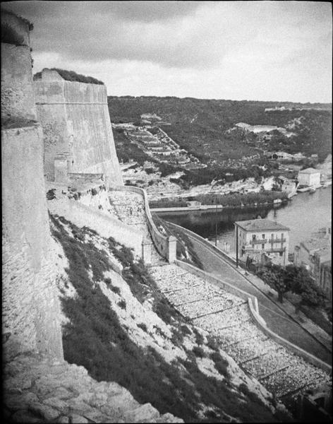 Les parties désignées ci-dessous de l'ensemble immobilier dénommé "enceinte urbaine fortifiée dite citadelle de Bonifacio", incluant les remparts et bastions, ainsi que les glacis, les portes et voies d'accès, les chemins de ronde et magasins d'artillerie, selon l'emprise figurée sur le plan annexé à l'arrêté. Cet ensemble immobilier figure au cadastre : section AB, sur les parcelles n°1, 5, 9, 10, 31, 41, 46, 47, 50, 53, 56, 57, 60, 67, 68, 70, 71, 74, 75, 85, 90, 91, 99 et section AC, sur les parcelles n°2, 35, 129, 131, 132, 133, 266, 300, 352, 391, 410 : inscription par arrêté du 16 février 2023