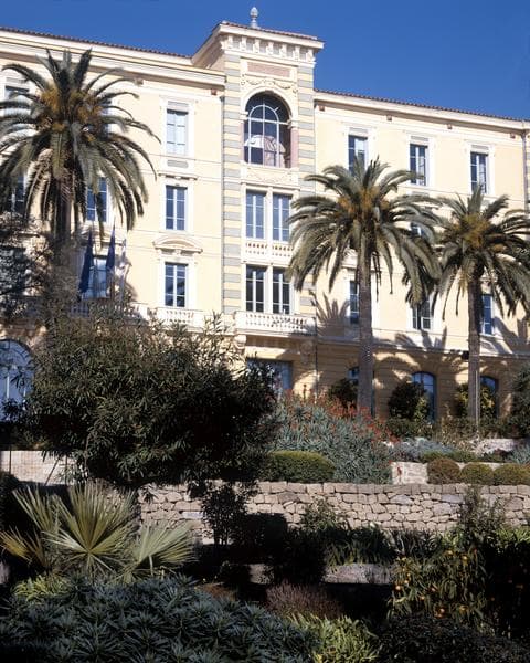 A l'origine appelé hôtel Germania, le Grand Hôtel a été bâti à partir de 1869. L'édifice se présente comme un vaste rectangle précédé d'un jardin ouvert sur le Cours. La façade principale est formée d'un corps central délimité par deux pavillons s'élevant plus haut que le reste des toitures. Les deux ailes sont dans le prolongement du corps central, encadrées par des pilastres à bossages. L'ornementation de la façade est empruntée au style néo-classique. Les baies du premier étage sont surmontées, dans le corps central, de frontons curvilignes soutenus par des consoles. Cet édifice a participé au développement de la ville sous le Second Empire et la Troisième République. Il abrite l'Assemblée Régionale de Corse.