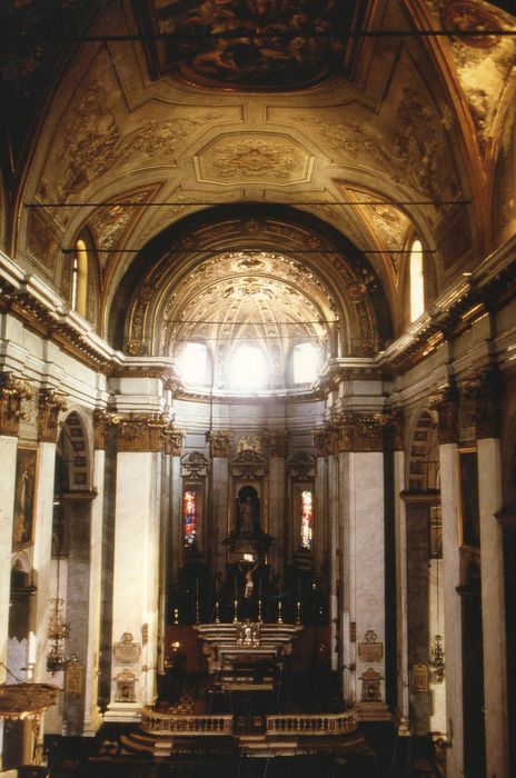 Eglise baroque édifiée entre 1636 et 1666, la plus importante de la ville. La façade de type jésuite à trois travées surmontée d'un fronton et encadrée de deux campaniles, est une reconstruction des années 1860 par Augustin Viale, de même que les clochers. L'église comporte une nef unique complétée par un choeur très profond et par trois chapelles latérales communiquant entre elles. Profusion et somptuosité du mobilier (maître-autel en marbre polychrome de 1694, stalles, statues polychromes et dorées...) , et du décor intérieur (peintures de la voûte).