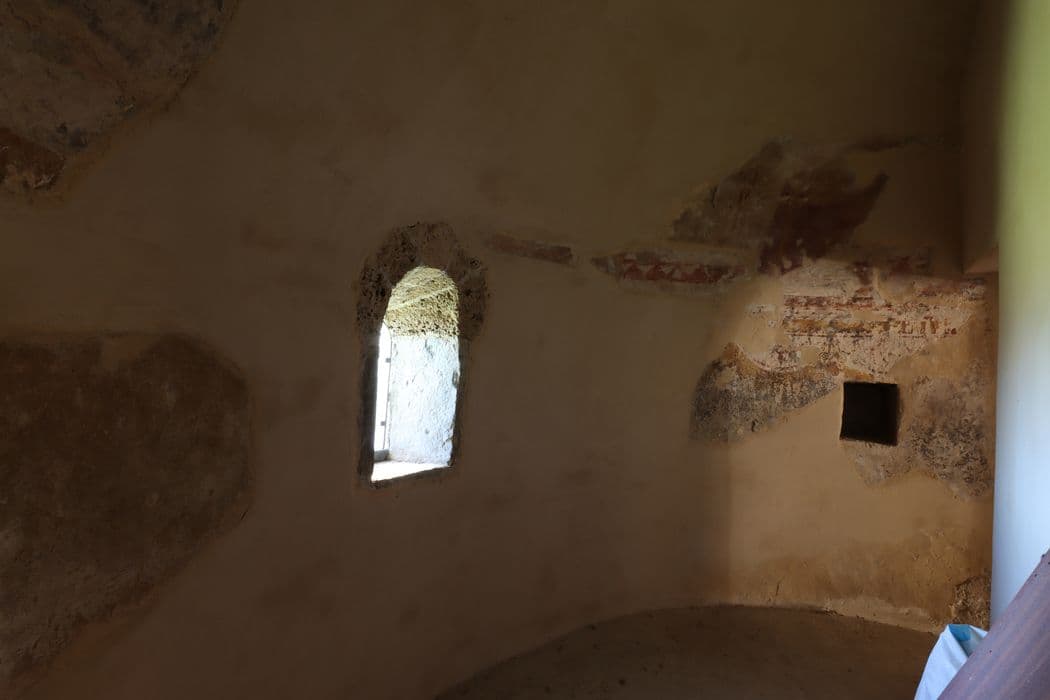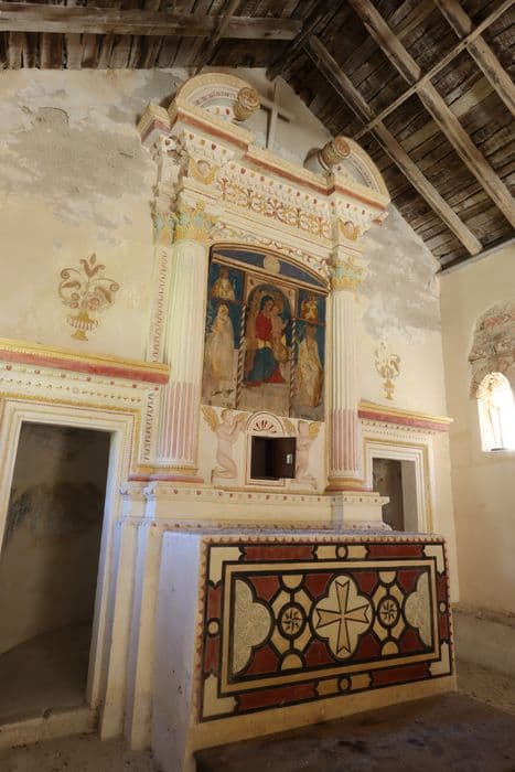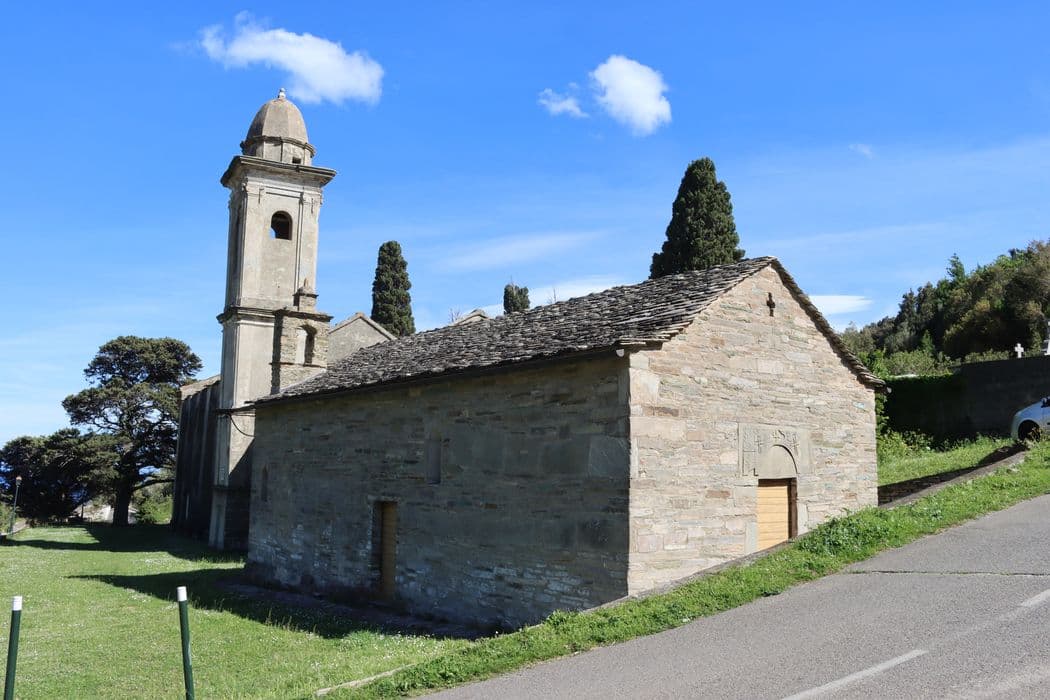 L'église présente deux époques de construction qui correspondent à un allongement vers l'ouest de la première nef. Dans son premier état (10e siècle) , l'édifice comportait l'abside telle qu'elle se présente et une nef. A la reprise des travaux (1378) , la longueur de la nef a été augmentée. L'abside semi-circulaire est voûtée en cul de four. £L'abside et les murs latéraux dus à la première campagne de travaux, présentent une maçonnerie en petit appareil de calschiste. La partie postérieure est de même nature, mais comporte un chaînage. La façade occidentale est ornée d'un linteau monolithe comportant le tracé en plein cintre d'une moulure délimitant un tympan nu au-dessus duquel s'étagent des motifs gravés. Sur la façade nord ont été utilisées des plaques de calcaire gravées provenant sans doute de la première façade, détruite. L'intérieur conserve des fresques du 14e siècle.