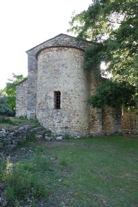 L'église (10e siècle) et le baptistère (13e siècle) sont tous deux construits en petites pierres cassées, liées au mortier de chaux. L'édifice présentait un plan basilical à trois nefs, dont il ne subsiste que l'abside. Le baptistère voisin conserve son abside et, prises dans la maçonnerie, ses deux absidioles. Aux abords, le terrain conserve les ruines d'une maison forte du 9e siècle.