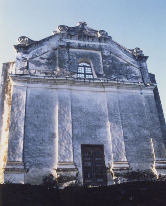 L'église est déjà mentionnée au 17e siècle, sans précision de date de construction. L'église baroque présente, à l'est, une élévation antérieure à deux niveaux séparés par une épaisse corniche et couronnée par un fronton à volutes. Elle est scandée de pilastres. L'édifice se termine par un chevet plat. Au sud se trouve un clocher carré percé de quatre baies et couronné d'une coupole surmontée d'une croix. La nef était ornée de stuc doré et comprenait quatre chapelles latérales. L'édifice a été restauré en 1853-1854.£