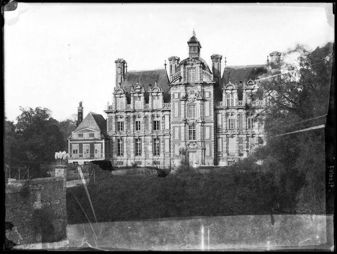 Château, sauf parties classées : inscription par arrêté du 8 mai 1926 - Façades et toitures ainsi que le grand escalier intérieur du château, cour d'honneur, douves, grande perspective du parc et la terrasse lui faisant suite, motte féodale (cad. AI 109 à 111, 186) : classement par arrêté du 20 décembre 1966 - Parc, perspectives, avant-cour, demi-lune, basses-cours, vergers et jardins clos avec leurs aménagements, murs, grilles et portails ; façades et toitures des pavillons d'entrée et des communs (cad. Beaumesnil AI 103 à 105, 107, 109 à 115, 117, 185 à 187, 241, 242 ; ZH 14, 16, 17, 20, 25 à 32 ; Gouttières ZD 37, 38) : inscription par arrêté du 5 février 1997