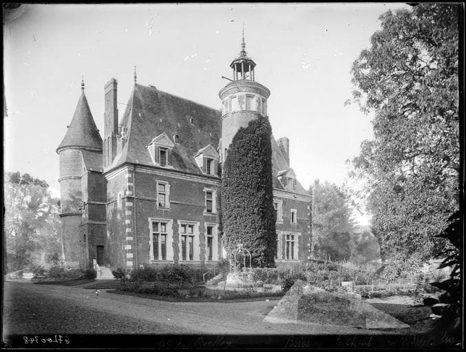 Château construit vers 1530-1535, par Claude Le Roux, conseiller au Parlement de Normandie et seigneur du lieu. C'est un édifice rectangulaire en briques, encadré de tours rondes et pourvu, à l'arrière, d'une haute tour terminée en belvédère abritant un escalier à la " Rihour ". Le logis est situé au centre d'une enceinte ovoïde à mur crénelé, et petites tours rondes pourvues de bouches à feu. Les communs en colombage ont été agrandis vers 1900. De 1897 à 1905, la restauration menée par l'architecte Emile Janet a modifié les façades et la distribution intérieure.