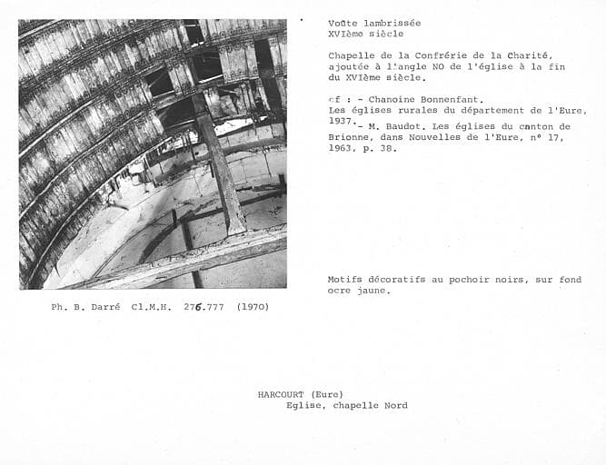 (c) Monuments historiques. Cette notice reprend intégralement les termes de l’arrêté de protection au titre des Monuments historiques. Elle répond à l’obligation réglementaire du ministère de la Culture d’établir la liste générale des immeubles protégés (art. R. 621-80 du Code du patrimoine). Elle est donc opposable et fait foi juridiquement. Aucune copie numérique ou papier ne sera fournie par courrier ni courriel. Le dossier de protection complet et l’arrêté sont consultables uniquement sur place, dans la salle de lecture de la Médiathèque du patrimoine et de la photographie (MPP), à Charenton-le-Pont (Val-de-Marne).