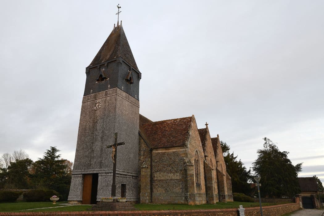 L'église est mentionnée vers 1127. Elle comprend, à cette période, une longue nef à chevet plat. Outre son fort clocher en charpente (sinistré en 1739), l'apport le plus spectaculaire est celui du bas-côté sud, réalisé en deux temps: à la fin du 15ème siècle, pour la structure générale, et au 16ème siècle, pour le couvrement aux délicats éléments sculptés. Le choeur comporte deux consoles sculptées ainsi que des peintures murales attribuables au 16ème siècle.