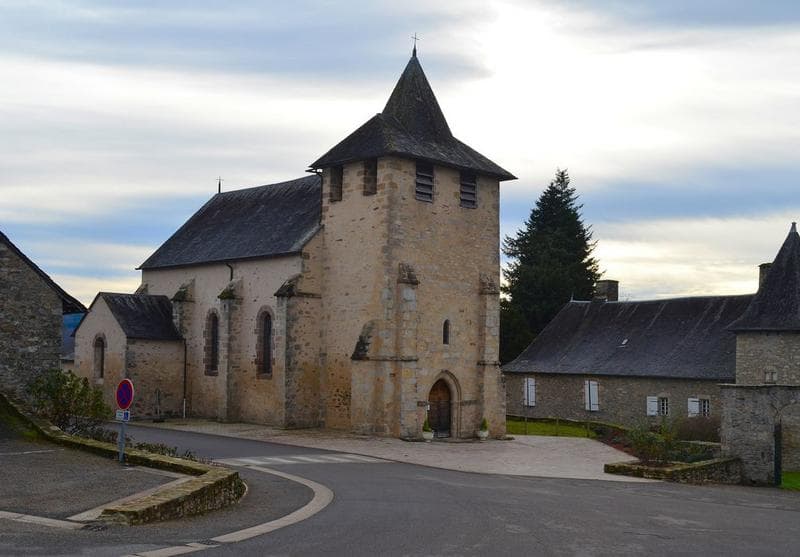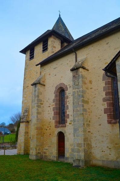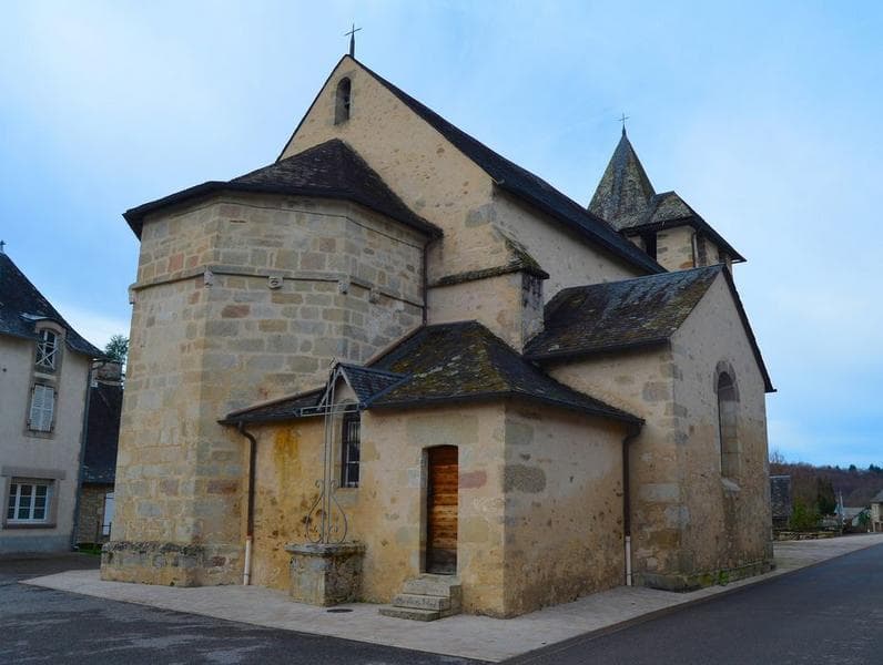 Au 13e siècle, la paroisse dépendait de l'abbaye de Beaulieu-sur-Dordogne. Petite église romane, voûtée en berceau, avec une abside en cul-de-four. Plan en croix avec nef à trois travées voûtées en berceau sur arcs doubleaux. Choeur semi-circulaire voûté en cul-de-four sur arcs plein cintre reposant sur des colonnettes. Clocher et porche du 12e siècle. Chapiteaux sculptés feuillurés et historiés à personnages et animaux. A l'extérieur du choeur, mascarons à figures.