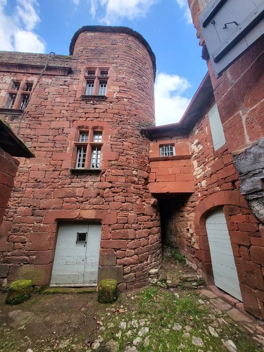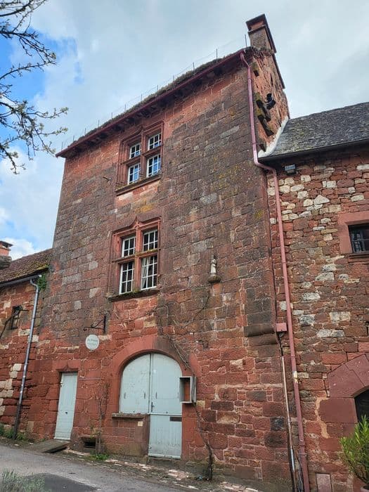 Maison à rez-de-chaussée et deux étages, en pierre de taille et moëllons de grès rouge, couverture en lauze de pierre rouge. Escalier dans tourelle. Porte d'entrée à accolade. Deux croisées Renaissance dont une ayant conservé ses meneaux. Porte de remise à anse de panier. Sur la façade côté halle, porte à accolade et croisée à accolade double dite à la Tudor.