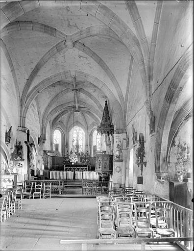 Primitivement, l'église ne comprenait qu'une nef terminée par un choeur à trois pans. L'abside, la façade nord et le portail sont de la fin du 12e siècle. Ce portail est abrité d'un porche. Au début du 15e siècle, le mur sud s'étant écarté sous la poussée de la voûte probablement en berceau plein cintre, cette dernière s'écroula et fut remplacée par la voûte actuelle. A la même époque, un clocher-pignon a deux arcades fut élevé sur la façade. Les deux chapelles qui forment, en plan, figure de transept, et les chapelles de la nef datent également du 15e siècle. Dans le cimetière, croix de pierre polychromée abritée sous un auvent.