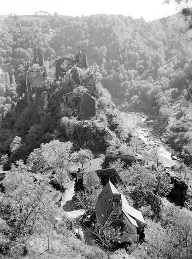 Les ruines sont les restes d'une petite place fortifiée, d'une châtellenie ou réunion de châteaux qui, suivant la tradition, étaient la propriété de divers seigneurs et servait de refuge aux habitants en temps de guerre. Dans leur ensemble, les constructions paraissent dater du 14e siècle, mais peuvent aussi remonter à une période plus ancienne. Les éléments composant ces ruines seraient les suivants : grange occupant, selon la tradition, l'emplacement de la seconde chapelle Sainte-Anne bâtie en 1674 ; emplacement de la maison dit de Veilhan ; emplacement du pont-levis de Veilhan dont une culée existe encore ; château ; maison de Fulcon de Merle (1365) ; château présumé du commandeur de Saint-Léger ; château présumé du prieur de Saint-Léger ; restes présumés du château de Saint-Bauzire ; tour de Noailles ; tour de Pestel ; maison de la garde du pont dont les piles ruinées existent encore.