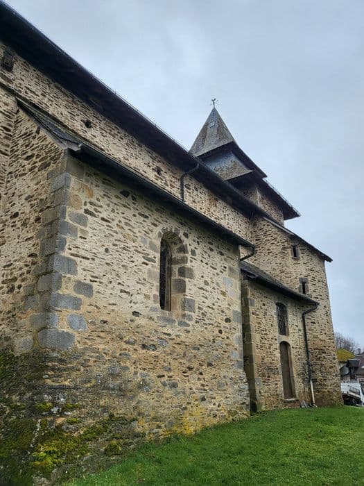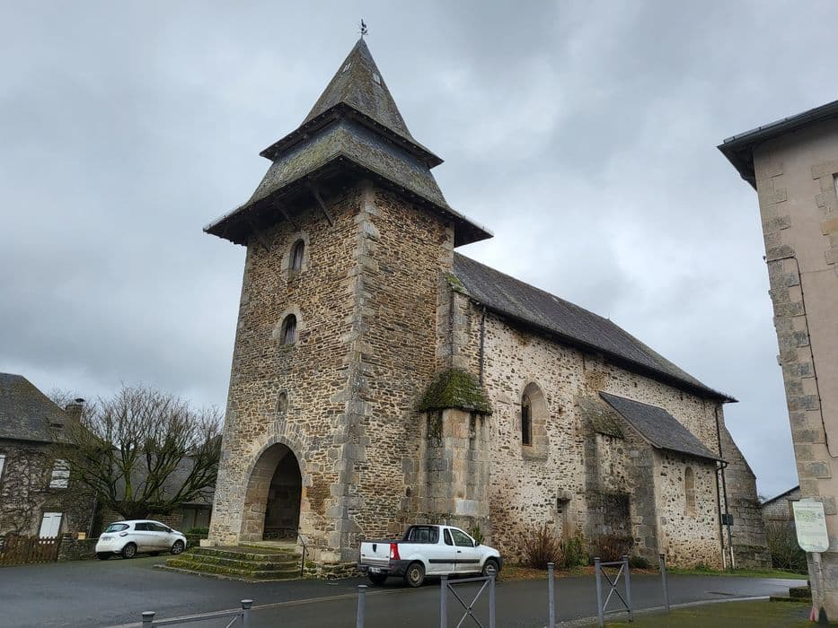 Edifiée à la fin du 15e ou au début du 16e siècle à l'emplacement d'un édifice primitif, la petite église se compose d'un vaisseau unique de trois travées sur plan carré que flanquent deux chapelles latérales au nord et au sud. Clocher-porche sur la façade occidentale. Sous le porche, portail flamboyant qui traduit, dans le style de la fin de l'art gothique, le parti des portails limousins. Un contrefort épaule le clocher au sud ; au nord, se trouve un semblable auquel s'appuie la tourelle semi-circulaire renfermant l'escalier.