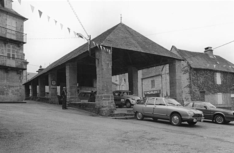 Halle allongée dont l'accès s'effectue, au nord et à l'ouest, par quelques marches en raison de l'inclinaison du terrain. Sur les côtés Est et ouest, six piliers en granit la divisent en cinq travées. Ces piliers cubiques, dont les angles sont abattus d'un chanfrein à congés jusqu'à près des deux tiers de leur hauteur, sont dressés sur des bases en forme de tronc de pyramide, ou présentant des degrés successifs en retrait. Sur les longs côtés, ces bases sont jointes par un mur élevé à hauteur d'appui, échancré d'une ouverture sur chaque face. Ces piliers servent de support à la toiture formée de quatre pans, couverte en ardoises du pays, et dont chacune des deux croupes est surmontée d'un épi en métal. La charpente comprend quatre fermes posées sur les sablières. Sur les trois travées centrales, des pannes reposant sur les arbalétriers portent les chevrons. Les deux travées extrèmes comportent deux tirants horizontaux croisés, joignant une petite pièce transversale établie dans chaque angle.