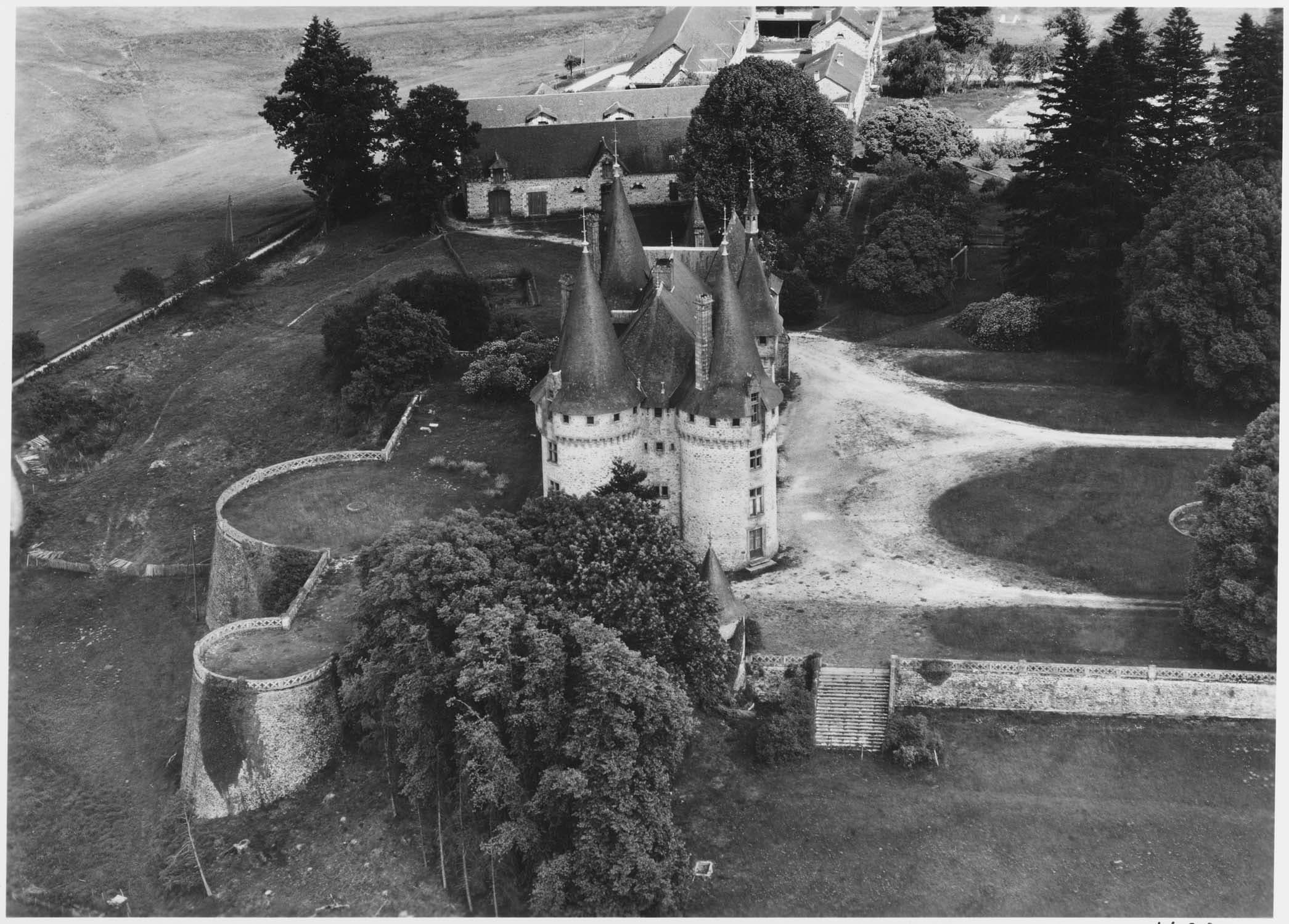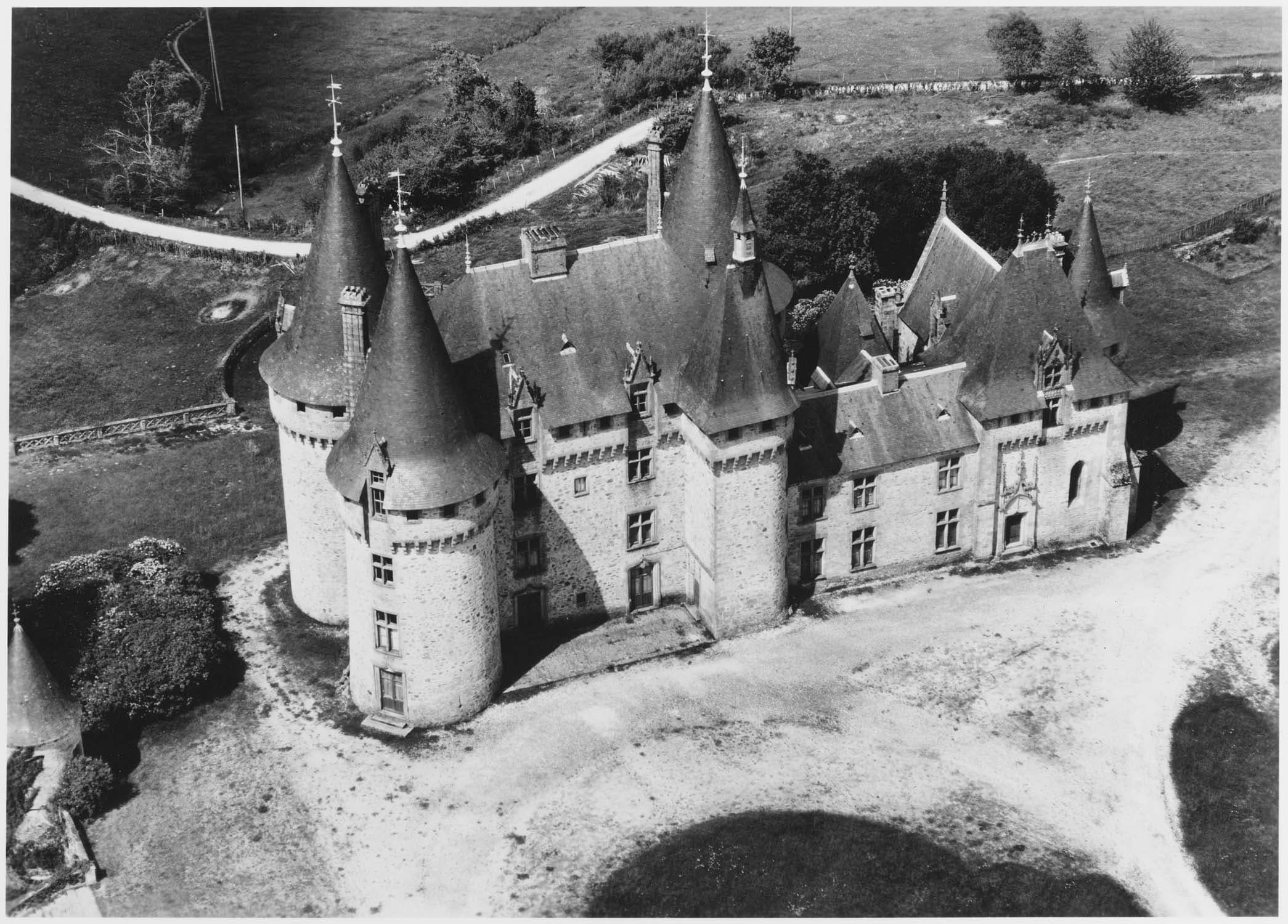 Très remanié au 19e siècle, le château présente trois bâtiments : celui d'origine, cantonné de quatre tours et restauré à partir de 1870 dans l'esprit 15e siècle ; un bâtiment intermédiaire avec, en façade, une tour carrée également remaniée ; plus à l'est, à l'arrière le bâtiment de la chapelle avec une façade nord de style néo-gothique. Divers communs se développent à l'est : orangerie, serre, écuries, maison du gardien, quatre bâtiments de ferme. Jardins d'inspiration classique en prolongement de la façade sud, ponctués de bassins, fabrique...