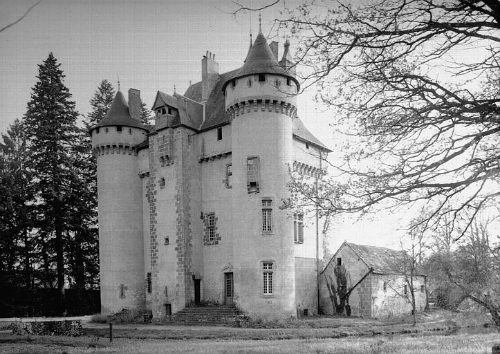 Ce château est l'un des exemples restés complets de maison forte du 15e siècle dans la Marche. Entre deux tours rondes a été élevée une tour carrée portant, à son sommet, une bretèche soutenue par trois corbeaux. Deux autres bretèches, posées sur deux corbeaux, existent sur la tour ronde nord-est. Le chemin de ronde aux mâchicoulis posés sur corbeaux profilés, entre deux quart de rond, d'un cavet dégagé par des filets, est interrompu entre les deux tours rondes. Sur la façade opposée, la tour carrée, d'une hauteur supérieurE au bâtiment principal, a son chemin de ronde à mi-hauteur du toit de ce dernier. Certaines des ouvertures primitives ont été remplacées par des baies modernes plus vastes. A l'angle nord-ouest a été accolé un bâtiment rectangulaire abritant la chapelle actuelle. L'ensemble est entouré de douves en eau ayant conservé leur tracé primitif. Ces douves sont franchies par un pont précédé d'un pavillon porche fortifié, ouvrant par un portail et une porte chanfreinés surmontés d'une rangée de corbeaux. Perpendiculairement à ce pavillon, une porte fortifiée joint l'ancienne chapelle transformée en bâtiment d'exploitation. Ce portail, mouluré d'un cavet, est surmonté d'un chemin de ronde porté sur une rangée de corbeaux, et percé de créneaux et de petites bouches à feu circulaires ouvrant sur une galerie. Dans l'angle intérieur formé par ce portail et le pavillon, se trouve une petite construction dont le caractère défensif est attesté par la présence de plusieurs bouches à feu. A l'intérieur, se trouvent six cheminées en pierre dont une ornée de sculptures.