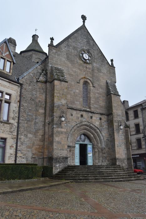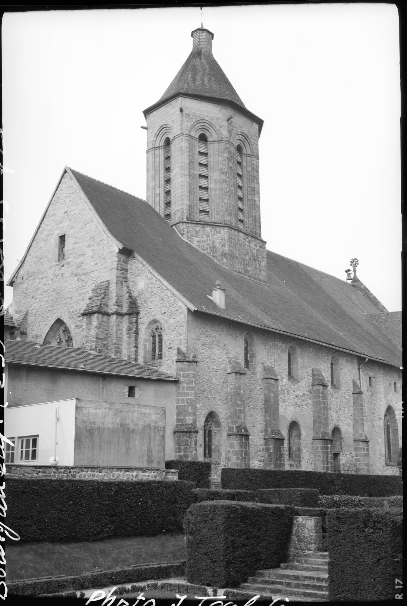 L'église actuel est celle de l'ancien prieuré établi au 12e siècle dans cette localité par les chevaliers de Rhodes qui, vers 1130, prirent le nom de Chevaliers de Malte. Bourganeuf fut, pendant plusieurs siècles, le chef-lieu de la langue d'Auvergne, l'une des huit langues ou nations qui composaient l'ordre de Malte. L'église est reliée aux constructions de ce prieuré, dont le reste le plus important est la tour dite de Zizim. L'église se composait primitivement d'un seul vaisseau comprenant quatre travées dont les deux premières formaient la nef, et la dernière constituait le choeur. Sur la première travée du choeur s'élève un clocher de plan octogonal barlong, avec tourelle d'escalier. La travée portant le clocher est fermée par une coupole. Les trois autres travées sont voûtées en ogive sur nervures. Tout cet ensemble date du 12e siècle. Dans les dernières années du 15e siècle, des chapelles furent établies sur les côtés de la nef. A la même époque, construction sur le côté nord du choeur une annexe à deux étages servant de sacristie.
