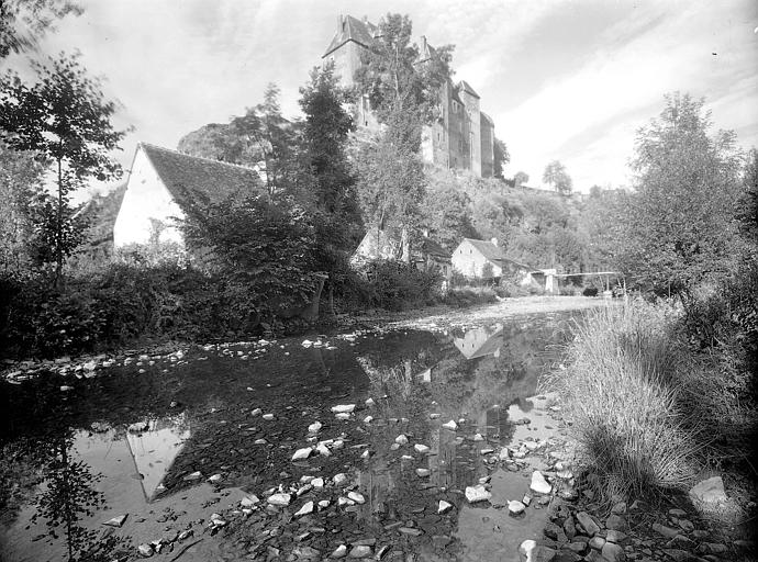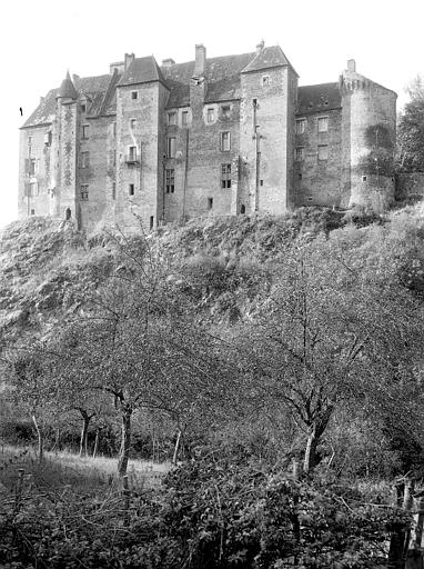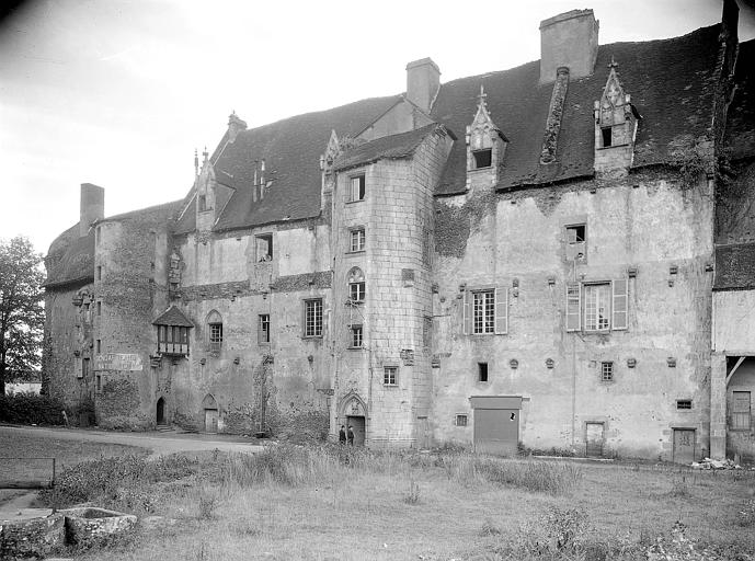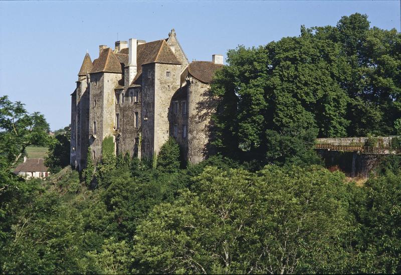 Jean de Brosse reconstruisit au début du 15e siècle la forteresse démantelée au 13e siècle par les Anglais. Bâti sur plan rectangulaire, le château possède deux tours carrées et une tourelle d'escalier à trois pans sur sa façade Est, ainsi qu'une tour ronde à son angle sud-ouest. Lucarnes dont les pignons du 15e siècle ont des crochets, des fleurons et des compartiments flamboyants. Une porte d'escalier en arc brisé possède un tympan sculpté. La tour sud-ouest a conservé une partie des corbeaux de son ancien mâchicoulis. Les fenêtres des premier et second étages ont été remaniées au 18e siècle. A l'intérieur, l'ancienne salle des gardes conserve des cheminées dont une sculptée d'une frise.