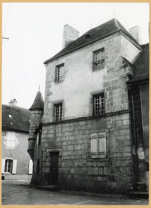 Cette maison était peut-être celle des Intendants du château. Il s'agit d'une maison de plan rectangulaire édifiée au 15e - 16e siècle, dont les ouvertures ont été repercées auu 18e siècle, cantonnée en ses angles Est et ouest par deux élégantes tourelles. Les étages sont desservis par un escalier à volées droites, situé dans un corps de plan carré, accolé à l'angle Est de la maison à tourelles.