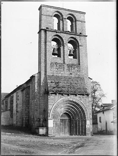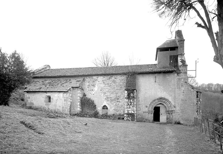 Le patronage de l'église appartenait à l'évêque de Limoges. L'édifice est formé d'une nef unique voûtée d'un berceau brisé et divisée en trois travées par des doubleaux reçus sur colonnes engagées à chapiteaux. La troisième travée forme le choeur à chevet plat. Chapiteaux sculptés (animaux, feuillages, personnages). Chapelle du 17e siècle. Une ancienne chapelle seigneuriale a été transformée en sacristie. Clocher-mur à pignon triangulaire à une seule arcade. La façade ouest semble avoir été refaite au 17e siècle (1641). Au nord s'ouvre un portail du 13e siècle, aux chapiteaux ornés de fleurs de lys, de crochets à boule.