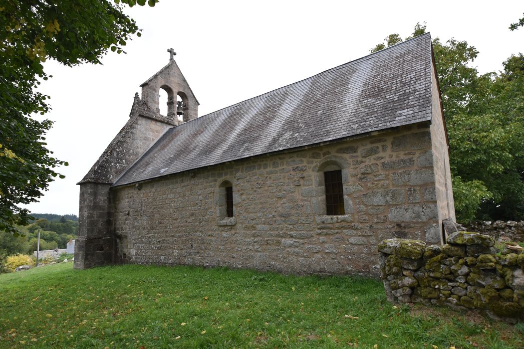 Petit sanctuaire rural caractéristique des églises médiévales du plateau de Millevaches, construites en granit. Il a été édifié au 13e siècle et modifié au 16e. La nef rectangulaire est terminée par un chevet plat. Une chapelle s'ouvre dans le mur nord, voûtée d'ogives à une lierne transversale, partant d'une clé ornée d'un soleil chevelu. Les deux culots sont ornés, l'un d'un oiseau, l'autre d'un motif géométrique. Entre cette chapelle et le mur du chevet, au-dessus d'une ouverture rectangulaire, se trouve un bas-relief. Un personnage barbu, inscrit dans un arc polylobé, tient ses mains levées. En-dessous, un écu est soutenu par deux personnages. Deux autres personnages barbus cantonnent le bas-relief. Cette chapelle appartenait à l'ordre de Malte.
