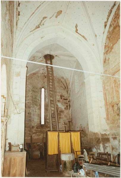 Eglise de templiers, puis d'hospitaliers de Saint-Jean-de-Jérusalem, vestige d'une commanderie. Vaisseau unique de cinq travées, avec première travée individualisée par des piliers adossés, voûté d'ogives à lierne retombant sur des colonnettes terminées en consoles à figures. Importants fragments de décor peint sur les murs, datant de la fin du 13e siècle. Au sud-est, à proximité immédiate, petite chapelle construite en 1449, dédiée à saint Fiacre, avec porte ouest à linteau en accolade encadré de pinacles.