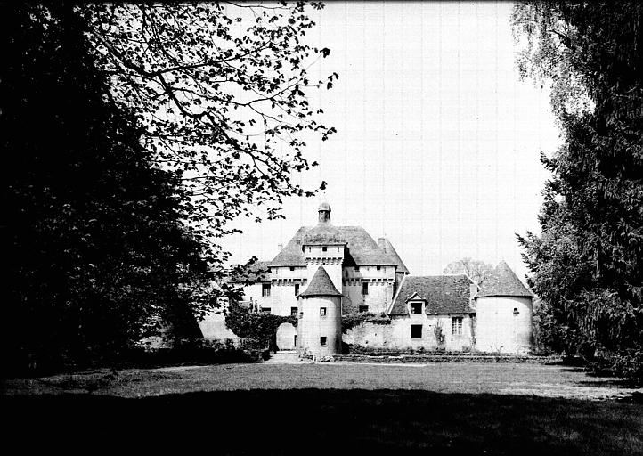 La partie la plus ancienne de l'édifice fut bâtie vers 1380, constituant un grand bâtiment carré de deux étages, pourvu de mâchicoulis avec chemin de ronde et flanqué de trois tours dont l'une, la tour centrale carrée, contient l'escalier en colimaçon. Vers 1645, la construction est mise au goût du jour. Sur la tour d'escalier fut posé un toit de forme nouvelle, surmonté d'une lanterne. Deux ailes basses, avec lucarnes, furent élevées, ainsi que les tourelles, dont l'une contient la chapelle. L'accès à la cour intérieure se fait par un portail d'entrée que précède un pont sur le fossé. L'ancienne entrée était flanquée de deux tours rondes basses dont une seule subsiste. Dans la cour intérieure, fontaine du 16e siècle à vasques. Une petite fontaine Renaissance est située dans le parc. Au moment de la Fronde, le prince de Condé aurait séjourné dans ce château.